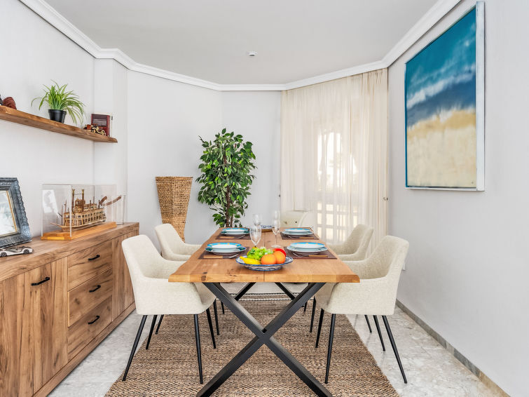 "Residencial Marina", apt 4 pièces 115 m2 au 1er étage. Logement idéal pour 4 adultes + 2 enfants. Spacieux, partiellement rénové en 2024, aménagement confortable et agréable: séjour/salle à manger avec TV (satellite) (écran plat), radiateur électrique et air-conditionné. Sortie sur la terrasse. 2 chambres, chaque chambre avec: 1 grand-lit (135 cm, longueur 190 cm), radiateur électrique. 1 chambre double avec 2 lits (90 cm, longueur 190 cm), radiateur électrique. Cuisine (lave-vaisselle, 4 plaques vitrocéramiques, grille-pain, bouilloire électrique, micro-ondes, congélateur, cafetière électrique, combiné micro-ondes) avec table pour les repas. Bain/WC, douche/WC. Terrasse 8 m2. Meubles de terrasse. A disposition: lave-linge, fer à repasser, sèche-cheveux. Internet (Connexion WIFI, gratuit). Place de parking No 52. VUT/MA/80558 // Reg. Nr.: ESFCTU0000290350002423080000000000000000VUT/MA/805581