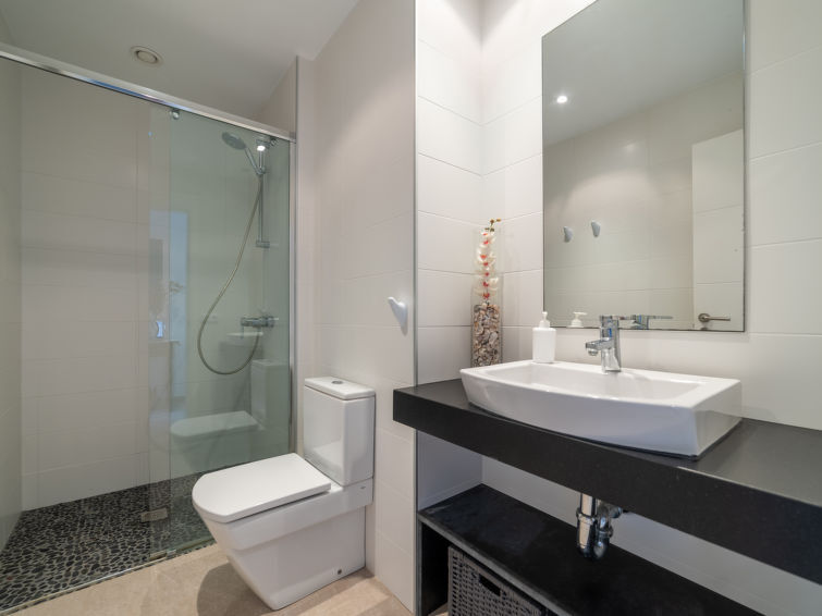 Cala San Vicente: Belle petite résidence confortable, luxueuse "Penyasegat Sea Views", année de construction 2021. Situation ensoleillée sur une colline, excellente situation: centrale mais tranquille, zone avec peu de trafic, à 500 m de la forêt, à 10 m de la mer, à, de la plage, route à traverser, orientée nord-est. En commun: douche extérieure. A usage privé: petit jardin avec plantes. Jardinet, meubles de jardin, barbecue. Infrastructures de la Maison: accès internet, Connexion WIFI, air-conditionné, lave-linge, sèche-linge. Parking public couvert à 50 m, parking public possible dans la rue. Magasins 100 m, magasin d'alimentation, supermarché 150 m, centre commercial 200 m, restaurant 50 m, bar 100 m, boulangerie 200 m, café 50 m, location de bicyclettes 300 m, biergarten 100 m, centre à 5 minutes à pieds, arrêt de bus 200 m, plage de sable "Cala Molins, Cala Carbó" 20 m. Port plaisance 10 km, marina 10 km, terrain de golf (18 trous) 8.5 km, ecole de surf 10 km, ecole de voile 10 km, tennis 8.5 km, centre équestre 10 km, centre sportif 7 km, chemins de randonnées pédestres depuis la maison 500 m. Attractions à proximité: Calvari de Pollensa 7.2 km, Playa Formentor 17.3 km, Faro Formentor 27.7 km, Alcúdia 15.6 km, Cuevas de Campanet 23.5 km. Veuillez noter: sans ascenseur. Indiqué pour séniors. Bien convenant à 4 adultes. Le propriétaire n'accepte pas les groupes de jeunes. Aéroport 66 km de la maison. Environnement très sensible au bruit. Silence et bonne tenue exigés.