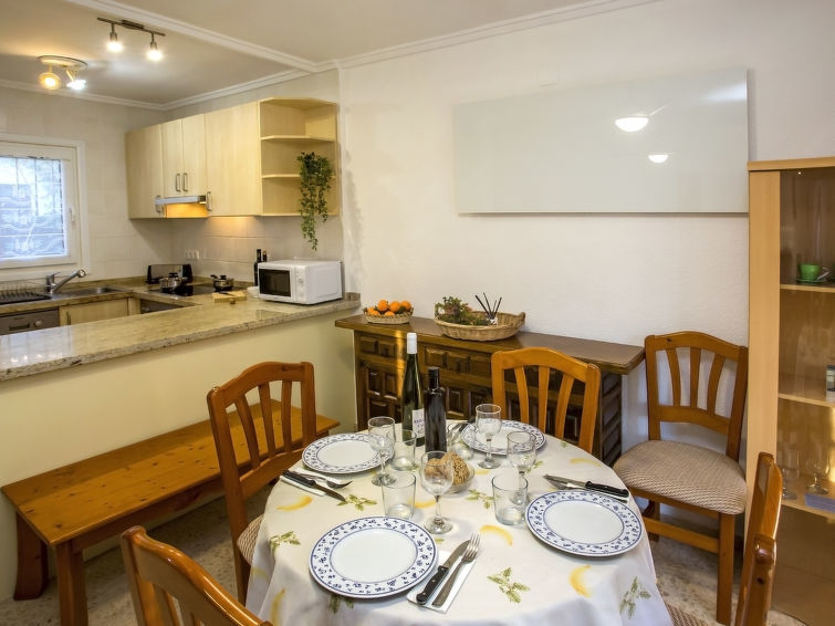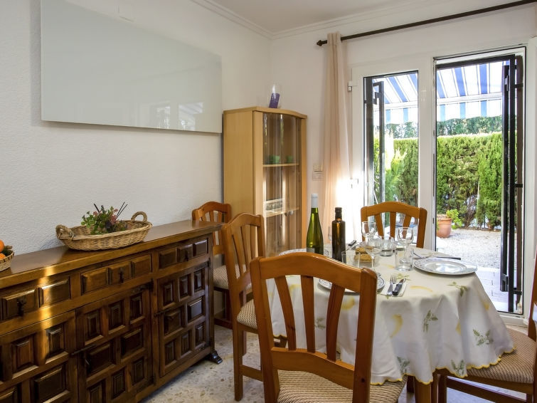 Belle maison mitoyenne accueillante, confortable "Residencia La Perla". Dans la localité, à 4 km du centre de Dénia, à, de la mer, à 700 m de la plage. En commun: 2 piscines (disponibilité saisonnière: 01.Jan. - 31.Dec.) avec marches intérieures. Piscine de forme irrégulière. Bassin pour les enfants, toboggan, douche extérieure, espace de jeux pour les enfants. A usage privé: terrain avec pelouse, place de parking près de la maison. Magasins 300 m, supermarché 900 m, restaurant 400 m, bar 450 m, arrêt de bus 800 m, gare ferroviaire 6 km, ferry 6 km, plage de sable "Playa des Bovetes" 700 m. Port plaisance 4.5 km, marina 4.5 km, ecole de voile 700 m. Le propriétaire n'accepte pas les groupes de jeunes.