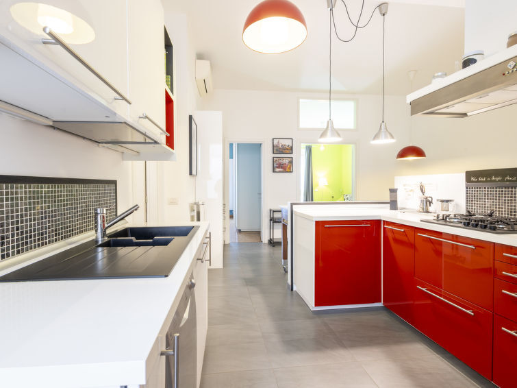 Appartement 3-kamers 95 m2 op de 2e verdieping. Ruim en licht, doelmatig en comfortabel ingericht: groot woon-/eetkamer met eettafel. Uitgang naar het balkon. 1 groot 2-pers. kamer met bad/bidet/WC. Groot woon-/slaapkamer met 1 2-pers divanbed (120 cm, lengte 190 cm), TV. Groot, open keuken (oven, afwasmachine, 4 kookpitten (vlammen), broodrooster, waterkoker, magnetron, diepvriezer, elektrische koffiemachine). Douche/bidet/WC. Verwarming, air-conditioning. Parketvloeren. Balkon. Ter beschikking: wasmachine, strijkijzer, kinderstoel, kinderbed, haardroger. Internet (WiFi, gratis). Geschikt voor families. Niet rokers woning. Rookmelders, brandblusser. IT015146C2ASGDYEER