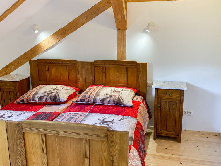 "Hasenstall / Top 8", appartement 5-kamers 79 m2 op 2 verdiepingen op de 2e verdieping. Het objekt is geschikt voor 8 volwassenen + 1 kinderen. Gedeeltelijk afgeschuinde daken, volledig gerenoveerd in 2023, zeer smaakvol en met veel hout ingericht: hal. Groot, open woon-/eetkamer. 1 2-pers. kamer met 1 2-pers divanbed. 1 2-pers. kamer met 1 x 2 stapelbedden. Open keuken (oven, afwasmachine, broodrooster, waterkoker, elektrische koffiemachine). 2 bad/douche/WC's. Bovenverdieping: 1 2-pers. kamer met 1 2-pers bed. 1 2-pers. kamer met 2 bedden. Parketvloeren. Klein balkon 6 m2. Zeer mooi panoramazicht op de bergen. Ter beschikking: wasmachine, strijkijzer. Internet (Internet (WiFi), gratis). Geschikt voor families. Privé ingang, rookmelders, brandblusser, geen lift.