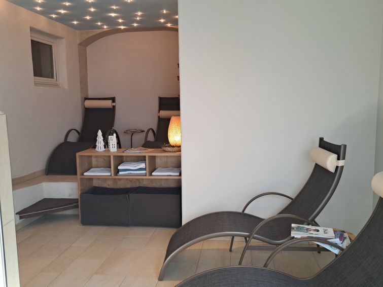 Appartement 4-kamers 75 m2 op 2 verdiepingen, op de bovenverdieping. Het objekt is geschikt voor 4 volwassenen + 2 kinderen. Comfortabel en modern ingericht: 1 2-pers. kamer. 1 2-pers. kamer met Sat-TV. Woon-/eetkamer met Sat-TV en radio. Uitgang naar het balkon. Open keuken (oven, afwasmachine, 4 keramische glas kookplaten, broodrooster, waterkoker, magnetron, elektrische koffiemachine, pads voor de koffiemachine (Nespresso), raclette oven, fondue Set (chinese)) met eettafel, Kabel-TV en Flatscreen TV. Douche/WC. Zolderverdieping: open galerij met 2 bedden. Balkon 14 m2. Balkonmeubilair. Ter beschikking: haardroger. Internet (modem aansluiting). Maximaal 1 huisdier/hond toegestaan. Via de woon-/eetkamer komt men op de galerij, welke is afgeschuind. 50409-000093-2020
