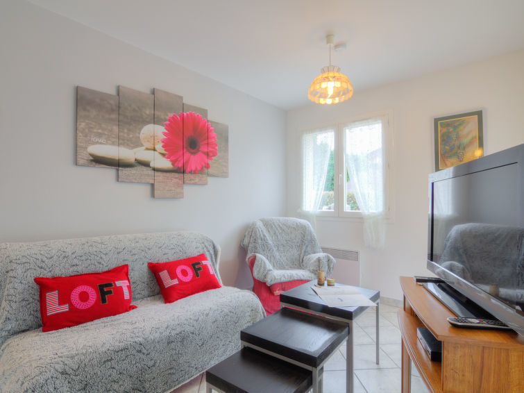 Eengezinswoning "Picasso". 1 km van het centrum, 600 m van zee, 600 m van het strand. Voor alleengebruik: terrein 700 m2 (omheind). Winkel 1 km, supermarkt 850 m, restaurant 1 km, zandstrand 600 m. Golfterrein 4 km, tennis 3 km, manege 15 km. Groepen jongeren uitsluitend op aanvraag. Let op: hoofdstraat in de buurt.