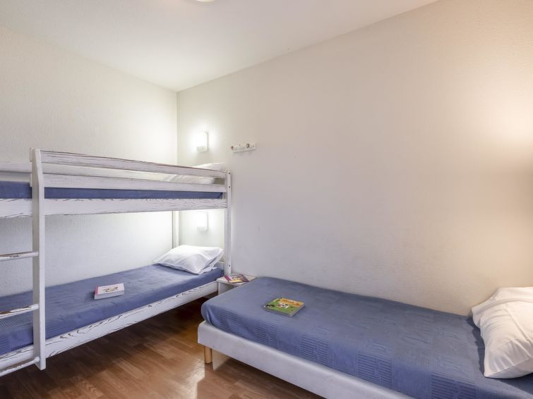 "Les Alcyons T3", appartement 3-kamers 42 m2. Het objekt is geschikt voor 3 volwassenen + 3 kinderen. Doelmatig ingericht: woon-/slaapkamer met 1 divanbed (140 cm, lengte 190 cm), eettafel en TV (Flatscreen TV). Uitgang naar het balkon, naar het terras. 1 kamer met 1 2-pers bed (140 cm, lengte 190 cm). 1 kamer met 1 bed (80 cm, lengte 190 cm), 1 x 2 stapelbedden (80 cm, lengte 190 cm). Slaapnis met 1 bed (80 cm, lengte 190 cm). Kookhoek (afwasmachine, 4 keramische glas kookplaten, waterkoker, magnetron, elektrische koffiemachine). Bad/WC. Elektrische verwarming. Balkon of terras overdekt. Terrasmeubelen. Ter beschikking: kinderstoel, kinderbed. Niet rokers woning. Maximaal 1 huisdier/hond toegestaan. Rookmelders. In plaats van een afgesloten slaapkamer bevinden sommige slaapgedeeltes zich in een open ruimte (galerij, nis, etc.).
