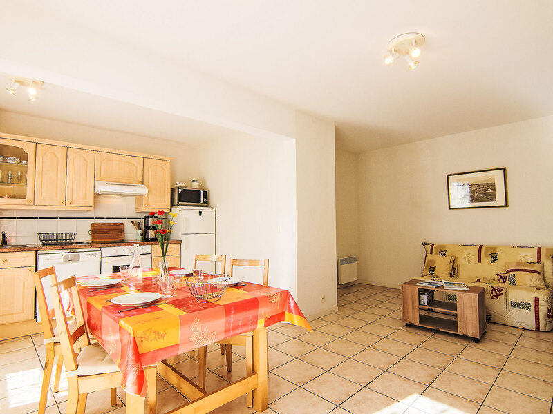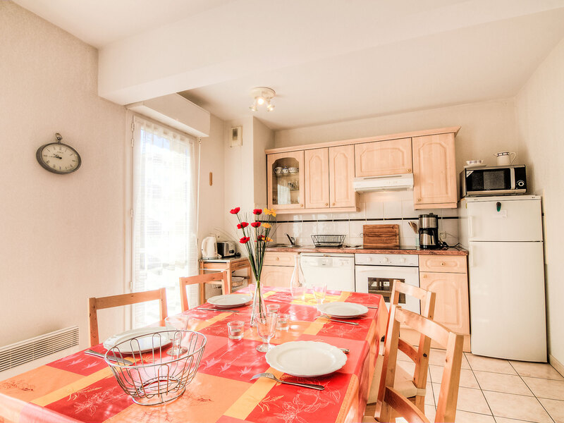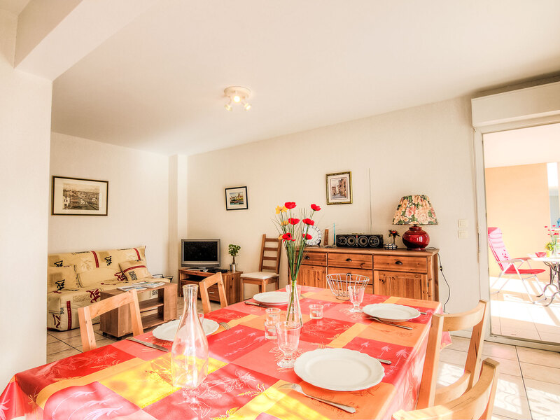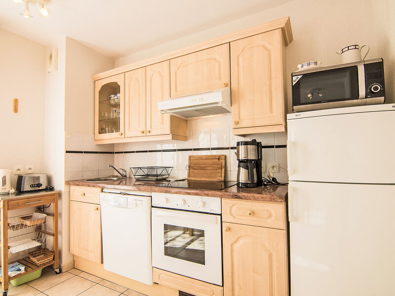 Appartement 2-kamers 49 m2 op de 1e verdieping. Mooi ingericht: woon-/eetkamer met 1 2-pers divanbed (140 cm), TV en radio. Uitgang naar het terras. 1 kamer met 1 2-pers bed (1 x 140 cm). Open keuken (oven, afwasmachine, 2 keramische glas kookplaten, 2 inductiekookplaten, magnetron, elektrische koffiemachine). Badkamer, aparte WC. Elektrische verwarming. Terras 9 m2. Terrasmeubelen. Ter beschikking: wasmachine. Internet (Internet (WiFi), extra). Parkeerplaats nr. 32. Rookmelders.