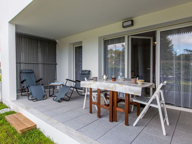 Appartement 2-kamers 42 m2, op de begane grond, op het noorden gelegen. Comfortabel en mooi ingericht: woon-/eetkamer met 1 divanbed (140 cm, lengte 190 cm), TV (Flatscreen TV). Uitgang naar het terras. 1 kamer met 2 bedden (90 cm, lengte 200 cm). Open keuken (oven, afwasmachine, 2 keramische glas kookplaten, broodrooster, waterkoker, magnetron, elektrische koffiemachine). Douche/WC. Elektrische verwarming. Terras 12 m2, overdekt, op het noorden gelegen, zithoek in de tuin 37 m2, op het noorden gelegen. Terrasmeubelen. Ter beschikking: wasmachine, strijkijzer, haardroger. Internet (Internet (WiFi), extra). Parkeerplaats nr. 238 - 239 (2 Auto's). Woning aan de straatzijde. Rookmelders. Aanbod door een particulier volgens art. 155, IV van CGI. 40133000396KA