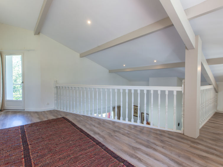 Villa 5-kamers 200 m2 op 2 verdiepingen. Ruim en licht, comfortabel en mooi ingericht: groot woon-/eetkamer 70 m2 met open haard en eettafel. Uitgang naar de tuin, naar het terras. Kleine bureau met TV (Flatscreen TV). 2 kamers, elke kamer heeft 1 2-pers bed (180 cm, lengte 200 cm). Open keuken (oven, afwasmachine, 3 inductiekookplaten, broodrooster, waterkoker, magnetron, diepvriezer, elektrische koffiemachine, pads voor de koffiemachine (Nespresso) extra) met eettafel. Bad/douche, aparte WC, dubbele wastafels. Bovenverdieping: 2 kamers, elke kamer heeft 2 bedden (90 cm, lengte 200 cm), wastafel en douche. Groot galerij. Uitgang naar het balkon. Aparte WC. Verwarming, air-conditioning. 2 balkons, op het zuidwesten gelegen en op het noordoosten gelegen, 2 terrassen gedeeltelijk overdekt, op het zuidwesten gelegen en op het noordoosten gelegen. Terrasmeubelen, barbecue (verrijdbaar), ligstoelen (8). Mooi uitzicht op het meer, het zwembad en het bos. Ter beschikking: wasmachine, droger, strijkijzer, kinderstoel, kinderbed, haardroger. Internet (Internet (WiFi), gratis). Rookvrij huis. Rookmelders. In plaats van een afgesloten slaapkamer bevinden sommige slaapgedeeltes zich in een open ruimte (galerij, nis, etc.). Aanbod door een particulier volgens art. 155, IV van CGI.