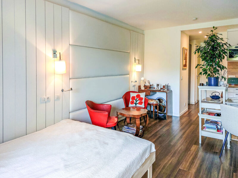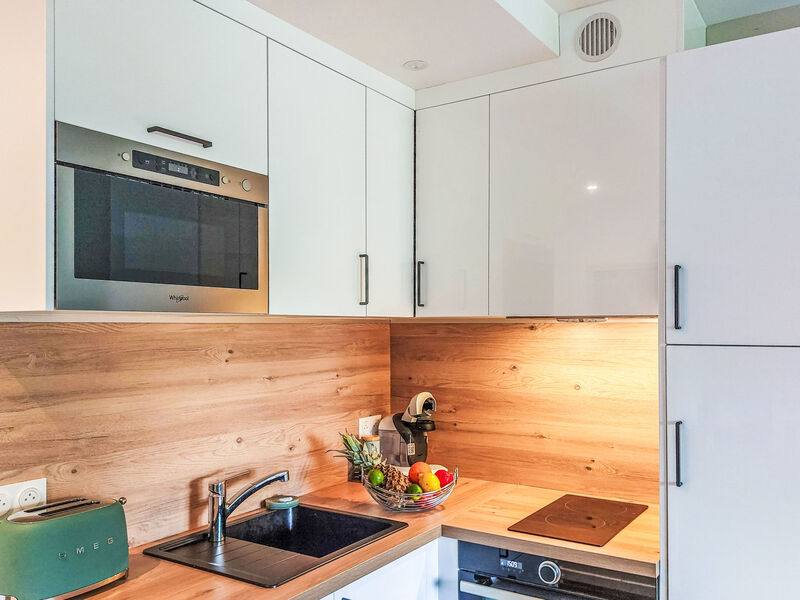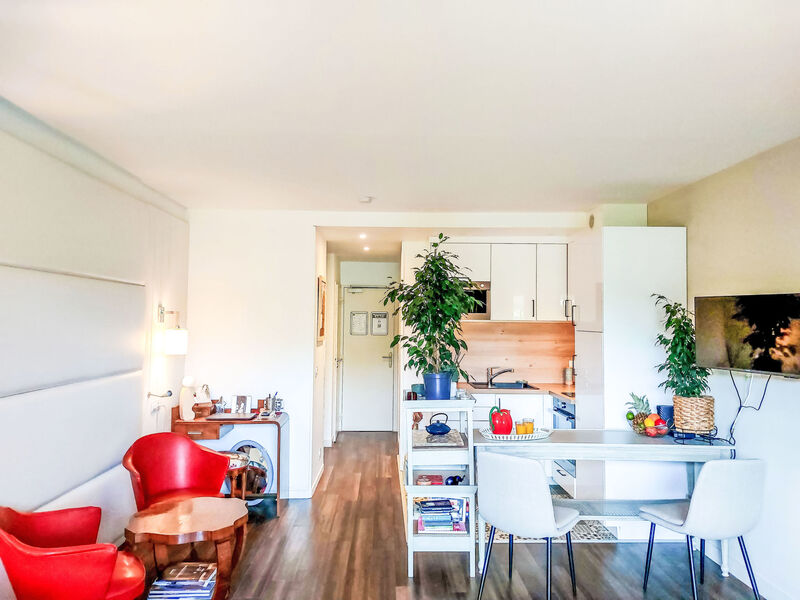 Studio 1-kamer 33 m2, op de begane grond, op het zuidoosten gelegen. Gedeeltelijk in 2025, comfortabel en mooi ingericht: woon-/slaapkamer met 1 2-pers divanbed (140 cm, lengte 190 cm), TV (Flatscreen TV). Uitgang naar het terras, naar de zitplaats in de tuin, op het zuidoosten. Open keuken (2 inductiekookplaten, broodrooster, waterkoker, magnetron, elektrische koffiemachine, pads voor de koffiemachine (Tassimo)). Douche, aparte WC. Air-conditioning. Terras 6 m2, kleine zithoek in de tuin 9 m2. Terrasmeubelen. Ter beschikking: wasmachine, strijkijzer, haardroger. Internet (WiFi, gratis). Parkeerplaats. Niet rokers woning. Rookmelders. Aanbod door een particulier volgens art. 155, IV van CGI. 640240047761E