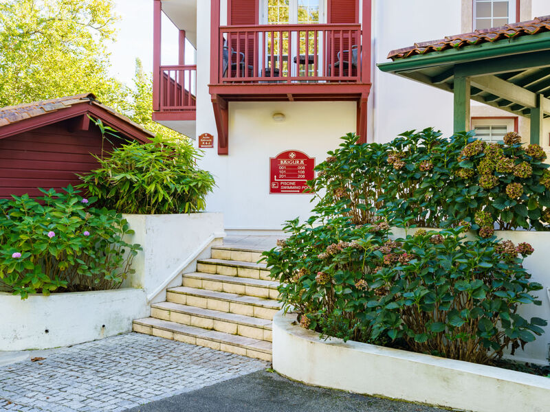Arcangues 7 km van Bidart: Residentie "Les Terrasses d'Arcangues". In het centrum van Arcangues, drukke ligging, 8 km van zee, 8 km van het strand, aan de golfbaan. Voor medegebruik: openluchtzwembad (200 m2, 80 - 170 cm diepte, seizoensgebonden beschikbaarheid: 15.Jun. - 01.Okt.). Kinderzwembad, tafeltennis, terras. In het huis: droogruimte. Levensmiddelenwinkel 100 m, supermarkt 6 km, restaurant 50 m, bar 200 m, café 50 m, voetgangersgebied 150 m, bushalte "Arcangues Bourg" 500 m, treinstation "Biarritz" 6 km, zandstrand "Milady" 8 km. Golfterrein (18 holes) 50 m, surfschool 8 km. Attracties in de buurt: Golf d'Arcangues 50 m, Cité de l'Océan 7 km, Aquarium de Biarritz 8.5 km, Phare de Biarritz 9 km. Wandelgebied La Rhune 36 km. Geen lift. De sleuteloverdracht vindt plaats bij het agentschap Interhome in Bidart, 8 km. Vergelijkbare accommodaties kunnen worden geboekt.