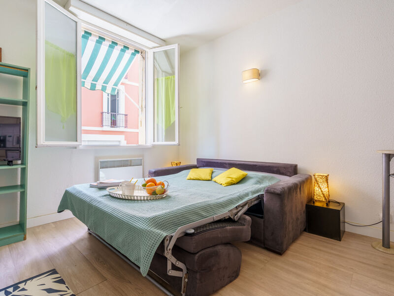 Studio 1-kamer 24 m2 op de 1e verdieping. Eenvoudig en doelmatig ingericht: woon-/eetkamer met 1 2-pers divanbed (140 cm, lengte 190 cm). Kleine, open keuken (2-pits kookplaat, broodrooster, waterkoker, magnetron, elektrische koffiemachine). Bad/WC. Elektrische verwarming. Woning aan de straatzijde. Niet rokers woning. Rookmelders. Aanbod door een particulier volgens art. 155, IV van CGI. 641220037497B