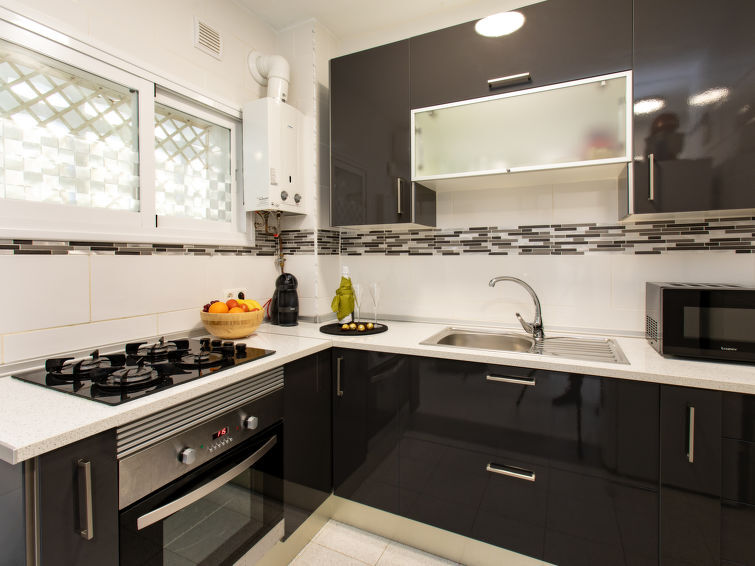 "Velilla", appartement 3-kamers 65 m2 op de 7e verdieping, op het zuiden gelegen. Licht, eenvoudig en doelmatig ingericht: woon-/eetkamer met Digitale TV. Uitgang naar het terras. 1 kamer met 2 bedden (90 cm, lengte 190 cm), ventilator. 1 kamer met 1 2-pers bed (180 cm, lengte 200 cm), ventilator. Open keuken in de hal (4-pits kookplaat, oven, broodrooster, waterkoker, magnetron, diepvriezer, elektrische koffiemachine, pads voor de koffiemachine (dolce gusto)) met air-conditioning en heteluchtverwarming. Douche/WC. Groot terras. Terrasmeubelen. Panoramazicht op zee en de plaats. Ter beschikking: wasmachine, strijkijzer, kinderstoel, kinderbed tot 2 jaar, haardroger. Internet (WiFi, gratis). VUT/GR/08390 // Reg. Nr.: ESFCTU0000180160000403580000000000000000VUT/GR/083906